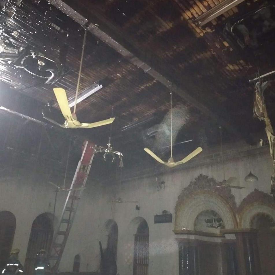 The fire has completely destroyed the mosque and according to one source, the fire is probably set by cronies of the military.